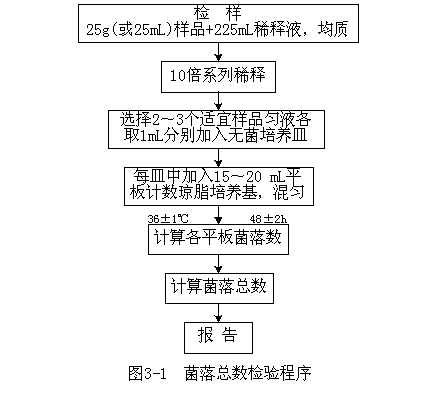 1)食品中細(xì)菌數(shù)量可反映該食品被污染的程度 新鮮的食品內(nèi)部一般是沒(méi)有或很少有細(xì)菌的,但由于外界污染情況不同,食品被細(xì)菌污染的多少就有所不同。食品中細(xì)菌數(shù)量越多,說(shuō)明被污染的程度就越嚴(yán)重,越不新鮮,對(duì)人體健康威脅越大。相反,食品中菌數(shù)越少,說(shuō)明該食品被污染的程度越輕,食品衛(wèi)生質(zhì)量越好,對(duì)人體健康影響也越小。 2)食品中細(xì)菌數(shù)量可預(yù)測(cè)食品耐放程度和時(shí)間 一般講,細(xì)菌數(shù)越少,食品耐放時(shí)間越長(zhǎng);相反,食品耐放時(shí)間就越短,例如用O℃保存牛肉,菌落總數(shù)為103cfu/cm2時(shí),可保存18天,而當(dāng)菌落總數(shù)增至lO5cfu/cm2時(shí)則只能保存7天。另外,用0℃保存魚時(shí),菌落總數(shù)為105cfu/cm2時(shí)可保存6天.而菌落總數(shù)在103cfu/cm2時(shí)則可保存12天。 3)食品中細(xì)菌數(shù)量可估測(cè)出食品腐敗狀況 一般認(rèn)為日常食品的活菌數(shù)為104~107cfu/g。而當(dāng)活菌數(shù)達(dá)到108cfu/g則可認(rèn)為處于初期腐敗階段。例如,活的家禽,皮膚表面的細(xì)菌數(shù)可低到1.5×103cfu/cm2。而加工后馬上檢測(cè)可達(dá)3.5×104cfu/cm2。當(dāng)菌落數(shù)為107cfu/cm2時(shí)表示確已經(jīng)腐敗,雞肉的細(xì)菌數(shù)達(dá)108cfu/cm2時(shí)可有氣味并變粘。一般講,食品中細(xì)菌數(shù)量越多,則會(huì)加速腐敗變質(zhì)過(guò)程的進(jìn)程,甚至可能引起食用者的不良反應(yīng)。二、菌落總數(shù)的常規(guī)檢驗(yàn)方法菌落總數(shù)的常規(guī)檢驗(yàn)方法(GB4789.2-2008):基本操作一般包括:樣品的稀釋——傾注平皿——培養(yǎng)48(24)小時(shí)——計(jì)數(shù)報(bào)告。